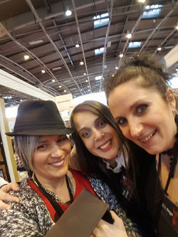 ![]() Avec Anaïs, Adélaïde et ValérieAvec Anaïs, Adélaïde (mon illustratrice) et Valérie Simon, également auteur lyonnaise de Fantasy |